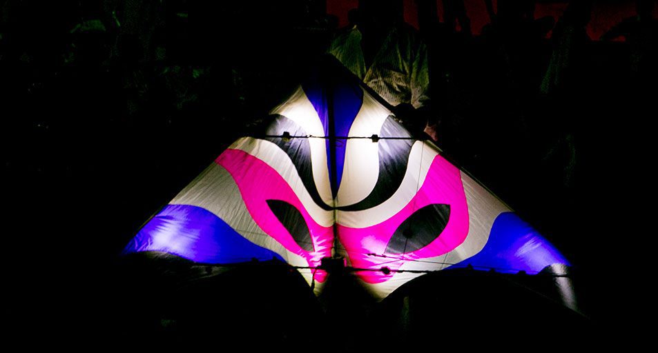 Delta stunt kite has the main spar and 2 leading edge spars with fabric stretched between them. One, two or even three horizontal spreaders are also used to keep the kite’s shape. The shape of the kite is triangular with some design to give it a pleasant look. Led’s battery operated are attached to spars for night kite flying.