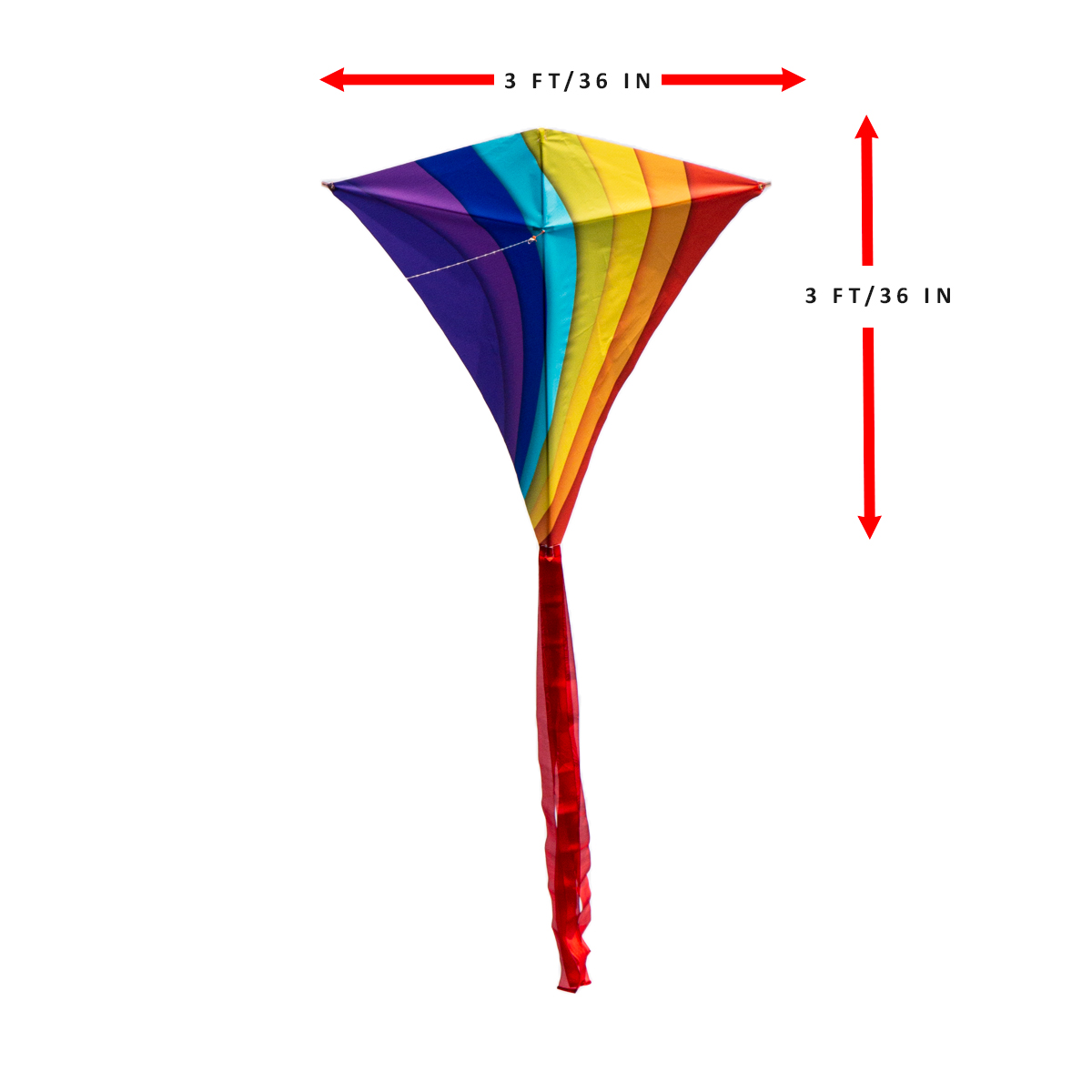 Add vibrant colors to the sky with the Rainbow Eddy Kite, designed in a multicolor pattern that’s perfect for kite festivals, family outings, and outdoor fun. Measuring 3 x 3 ft, this kite is crafted from durable waterproof fabric and supported by lightweight fiberglass rods for stable and smooth flying.